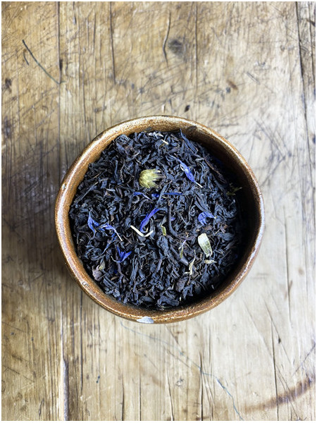 L'ajout de petites fleurs de bleuets contribue à l'équilibre parfait entre thé noir et bergamote.