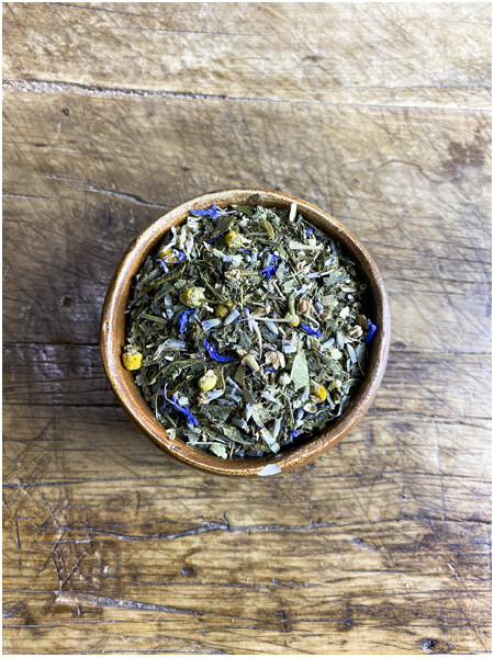 Un mélange excellent pour son goût et fabuleux pour se détendre, grâce à toutes les plantes réputées pour leurs vertus destressantes et apaisantes. La verveine, la fleur d'oranger, la camomille et le tilleul, ainsi que quelques pétales de bleuets, le tout réhaussé par de très agréables notes d'agrumes