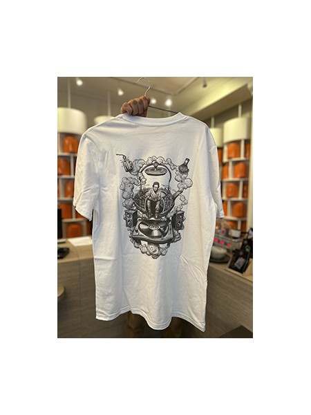 DEcktwo, artiste français reconnu pour ses fresques monumentales, joue avec les perspectives et les détails infinis pour créer de véritables voyages visuels.  Pour le Parti du Thé, Decktwo a créé une oeuvre inédite, ou la précision du trait rencontre l'imaginaire urbain. Une oeuvre d'art à part entière.