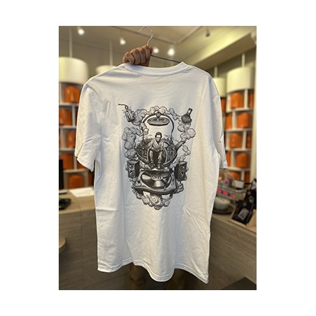 DEcktwo, artiste français reconnu pour ses fresques monumentales, joue avec les perspectives et les détails infinis pour créer de véritables voyages visuels. Pour le Parti du Thé, Decktwo a créé une oeuvre inédite, ou la précision du trait rencontre l'imaginaire urbain. Une oeuvre d'art à part entière.