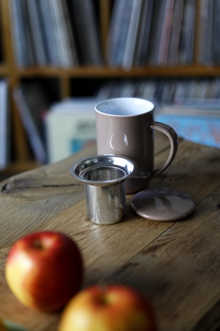 Un magnifique mug en porcelaine marron avec son filtre réutilisable intégré, idéal pour déguster votre thé ou infusion !