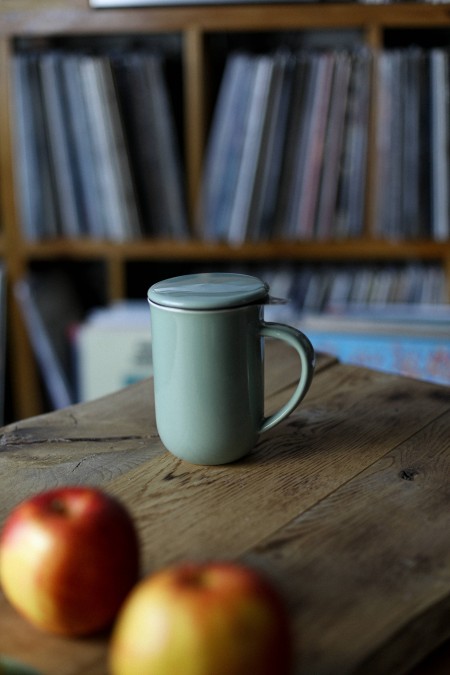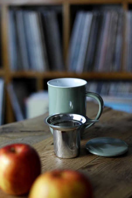 Un superbe mug en porcelaine vert avec son filtre réutilisable intégré, idéal pour déguster votre thé ou infusion.