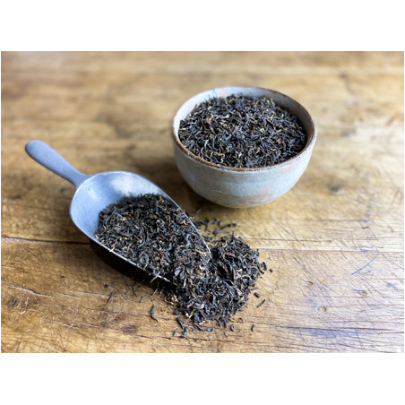 Le Darjeeling tel que nous le souhaitions. Après 1 an d'essais, d'assemblage de differentes récoltes, de travail acharné, nous sommes enfin arrivés au résultat escompté : le goût typique, classique, des très bons darjeeling que nous aimons, boisés mais pas trop, fruités délicatement, des tanins très fins, bref un rêve en tasse.