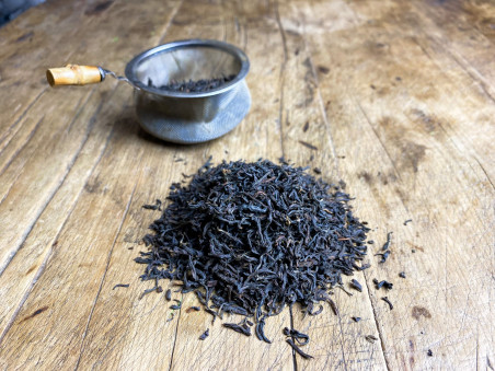 Les feuilles de cette récolte sont brunes très foncées, avec quelques bourgeons dorés : le taux d’oxydation est clairement plus important que sur une récolte de printemps classique. Le nez est très fruité, sur des notes presque compotées. Des pointes cacaotées accompagnent un final sur des saveurs de pommes de fin saison, extraordinaire.