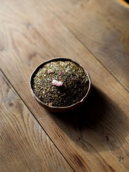 Ici on l’a associé à des beaux fruits du verger (poire, pomme verte), quelques fleurs de cerisiers et de jolies pétales de roses. Un goûts très affirmés, délicieux chaud mais aussi glacé.