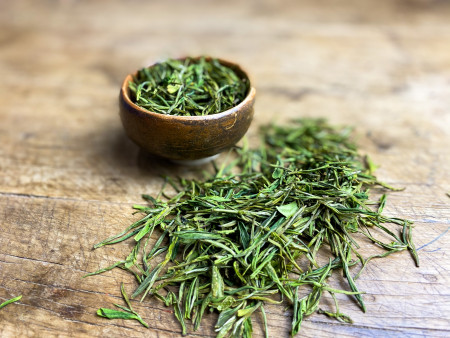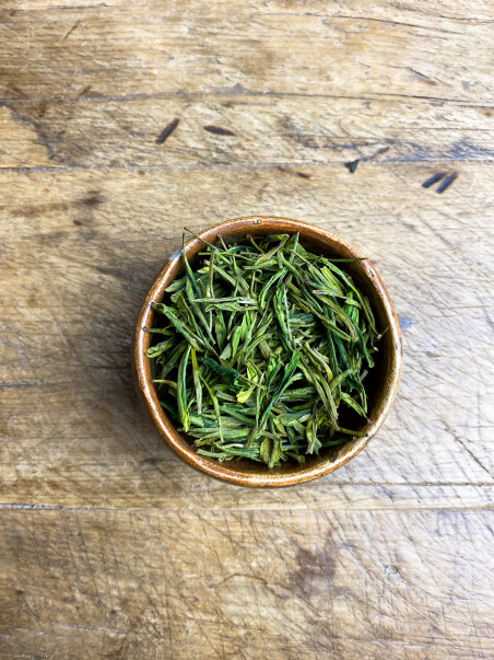 Grand classique du Zheijiang, produit par M. Mei. Les feuilles sont comme des aiguilles de pin. Les parfums enivrants : sur des notes sucrées / acidulées, avec un fond végétal extraordinaire. Cette récolte de printemps est étonnante à plus d’un titre : le nombre d’infusions successives possibles est impressionnant.