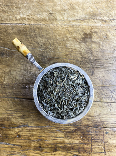 Ce thé tient son nom de la forme particulière de ses feuilles, en forme de sourcils, chunmee en chinois. Corsé mais mais plus nuancé qu'un gunpowder, sa fraicheur lui permet d'être dégusté nature, ou comme base de préparation pour un thé à la menthe. Thé issu de l'agriculture biologique - certifié écocert